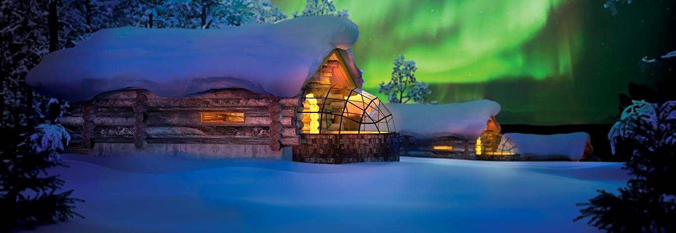 After breakfast, you’ll be chauffeured to the airport for your included flight to the Arctic Circle. On arrival at Ivalo Airport, you’ll be met and transferred to Kakslauttanen Arctic Resort. Here on the edge of the unbroken wilderness of Finland’s largest national park, you’ll enjoy private accommodations in your own Kelo-Glass Igloo. The rest of this day is yours to delight in the inviting ambience of your private cabin – You might try out the sauna, sit by a roaring fire, or take in the views from your glass igloo. Of course, you can also explore the forested grounds of our resort. This evening, you’ll join fellow guests for dinner at the restaurant. Meals B+D