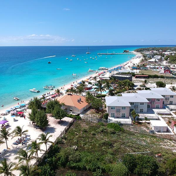 one mile of pristine, white sand beach overlooking the beautiful Bahamian