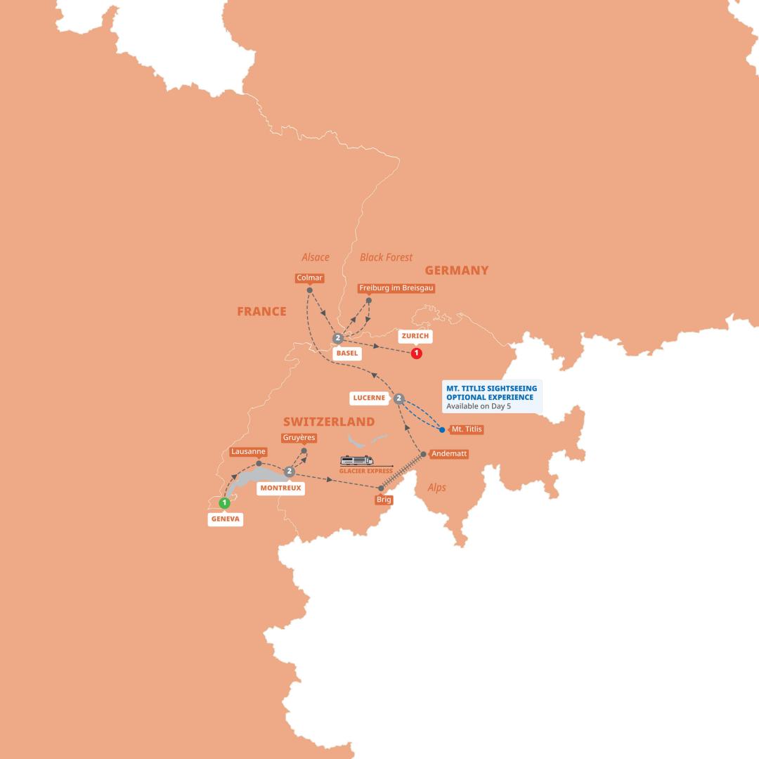 Say a fond farewell to Switzerland and your newfound friends at the end of an unforgettable journey. Your final hotel is located at the airport, just a short walk from the terminal, so there's no need to arrange a transfer.