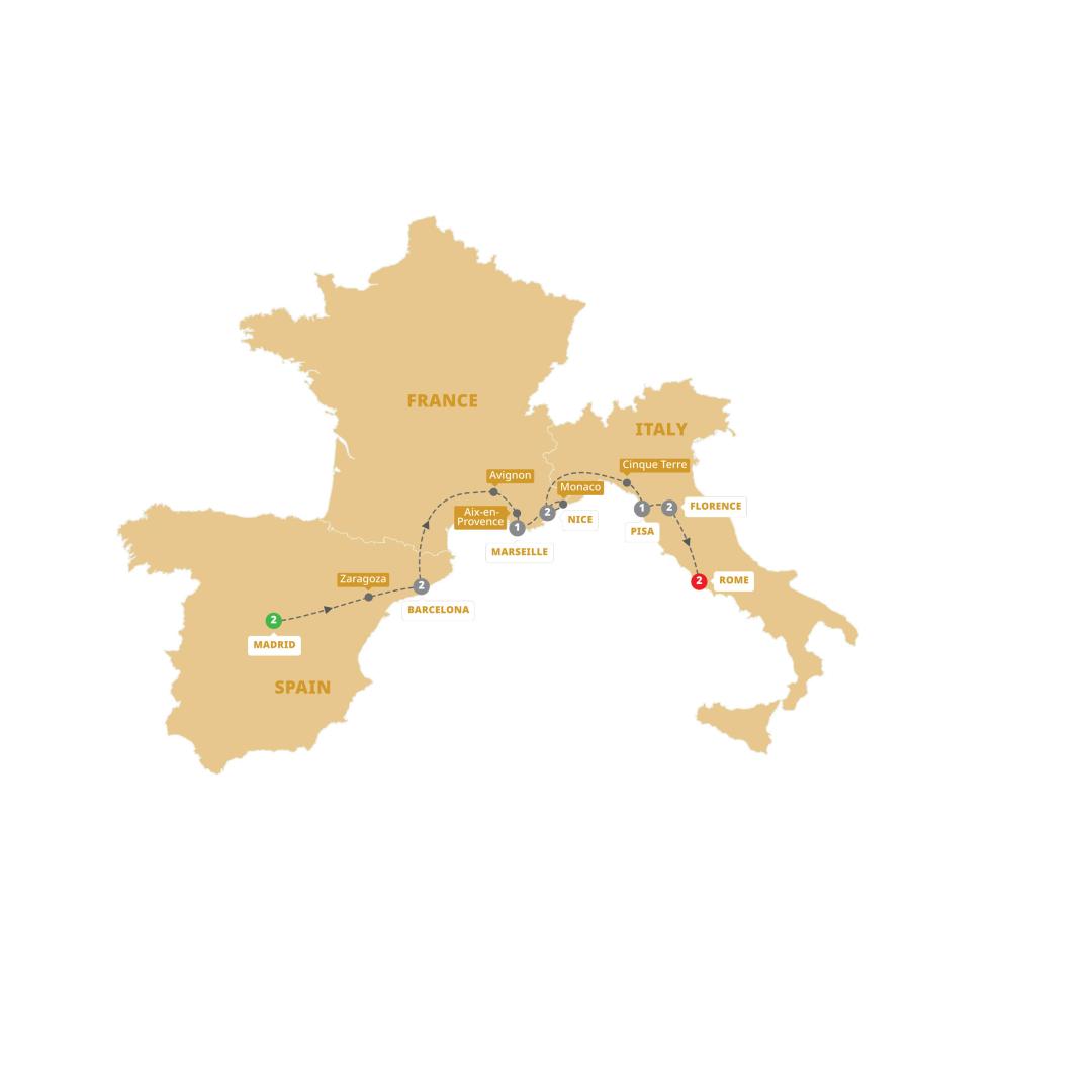 Cross into France via the foothills of the Pyrenees and travel to the historic city of Avignon. See the impressive Gothic Papal Palace and the iconic bridge celebrated in the song 'Sur le Pont d'Avignon.' Continue through the landscapes of Provence, once captured on canvas by Van Gogh and Cezanne. In Aix-en-Provence, a town founded by the Romans, enjoy a leisurely exploration and Dive into Culture as you browse for local specialties such as wine, olive oil, herbes de Provence and saffron. Your day ends in the coastal city of Marseille, where you'll stay overnight.